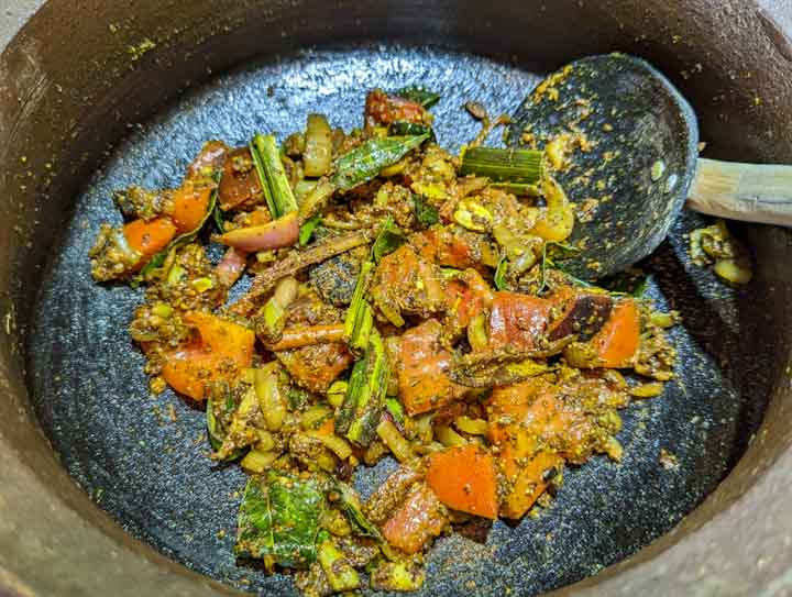 I use my homemade meat curry powder (which is honestly so easy to make and wayyyy better than store-bought powder, so I hope you try it). But of course, you can use either store-bought meat curry powder or Sri Lankan roasted curry powder (some people call this Sri Lankan black curry powder/kalu kudu). These curry powders are made with toasted spices so they are quite strong and have a nice smoky flavor and aroma.