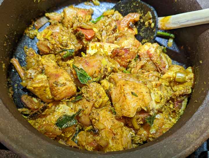 If you’re not new to my blog, you probably are familiar with my red chicken curry, Sri Lankan traditional chicken curry, and roasted coconut chicken curry recipes. In all the recipes, I encourage you to use bone-in thigh or leg meat (dark meat). But for this recipe, you can use both white and dark meat. Since we cut them into relatively smaller chicken pieces, they absorb a lot of flavor. I still do encourage you to use bone-in chicken though. And add any chicken giblets like liver, heart, and neckpieces to the curry. They certainly add more flavor to the broth.