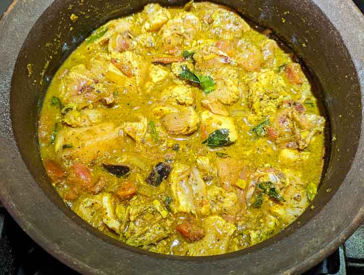Or you can do the braising method if you have more time. Add some extra water and cook the curry for about 45 - 50 minutes on low heat with the lid on. Chicken pieces will absorb more flavor and become tender as well.