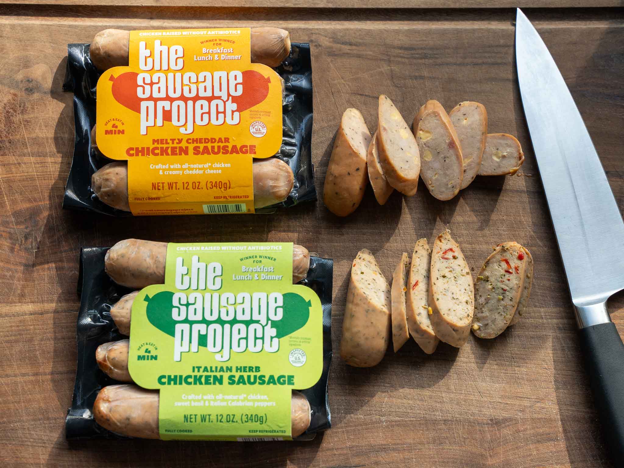 I use Sausage project Italian sausage and Melty cheddar chicken sausage. They are pre-cooked and pair well with the other ingredients I use. More information about these sausages is in the next section.