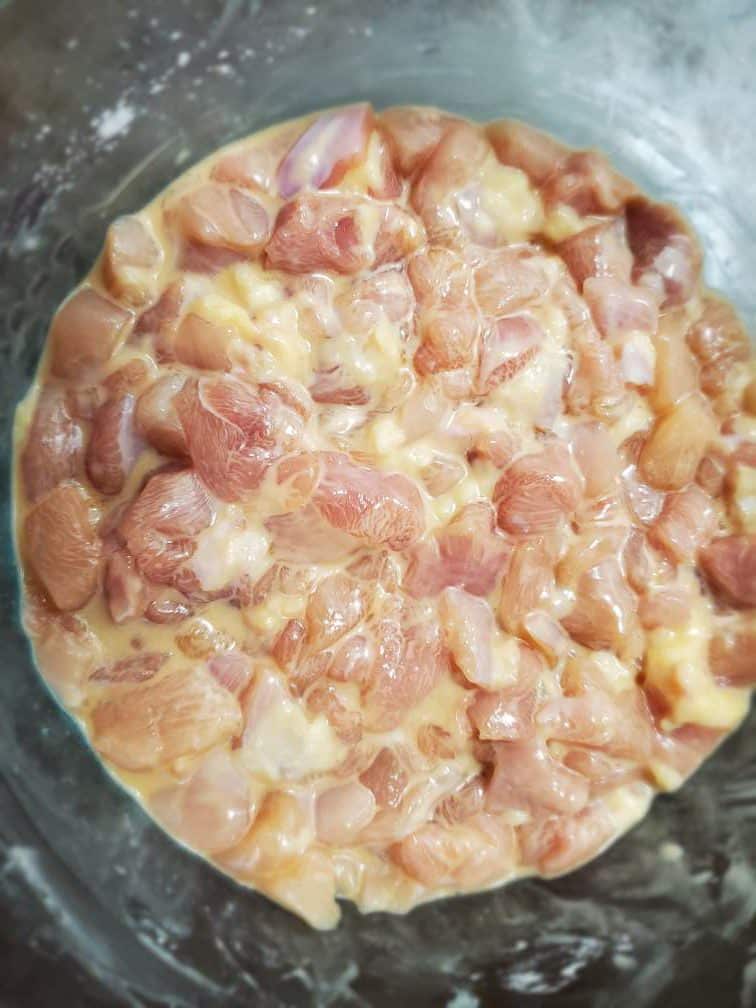 Marinade the chicken with all the ingredients under "chicken marinade" on the ingredients list above. Leave it for about 20 mins.