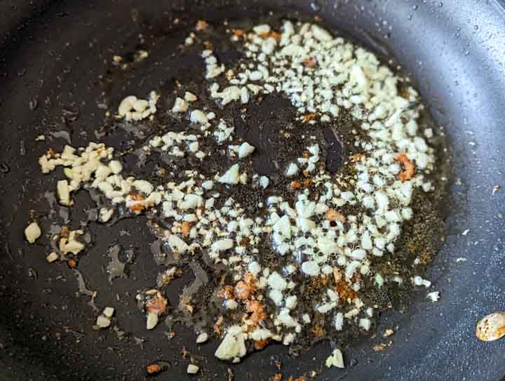 In the same skillet, add the minced garlic and sauté for about 1 minute until fragrant. (Add a little bit of oil if the pan is dry)