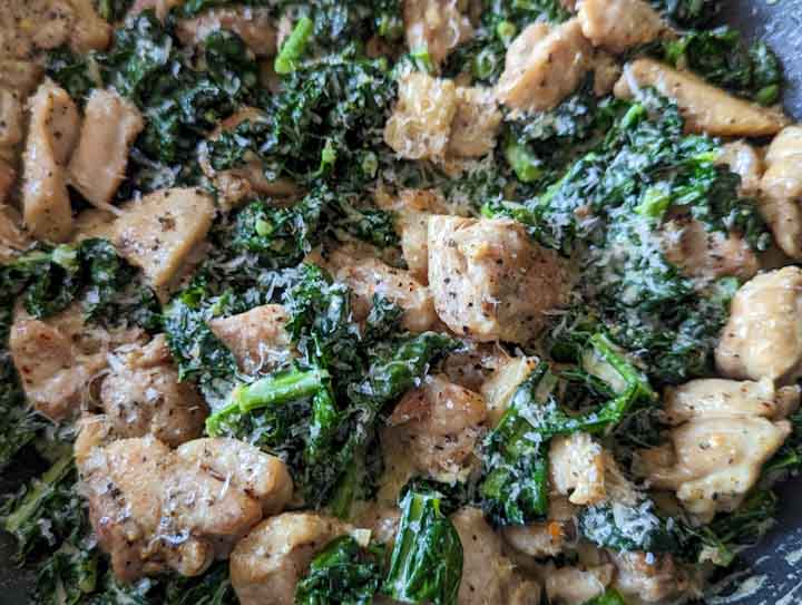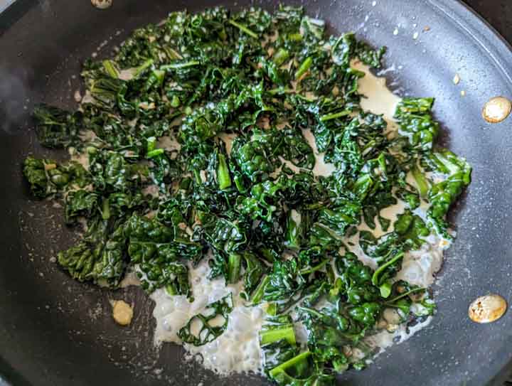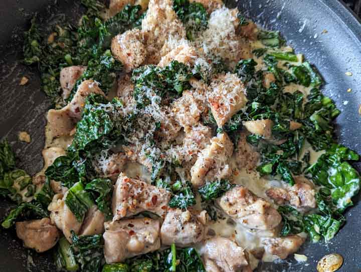 Add the cooked chicken back into the skillet with the creamy kale.