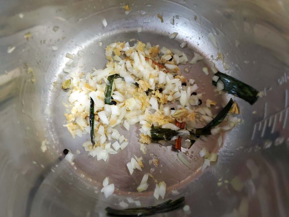 Add your chopped onion. (You can turn off the instant pot or rice cooker for a minute or two if ginger and garlic starts to burn and stick to the bottom) Saute well with butter and ginger garlic paste. Cook until onions start to turn translucent.