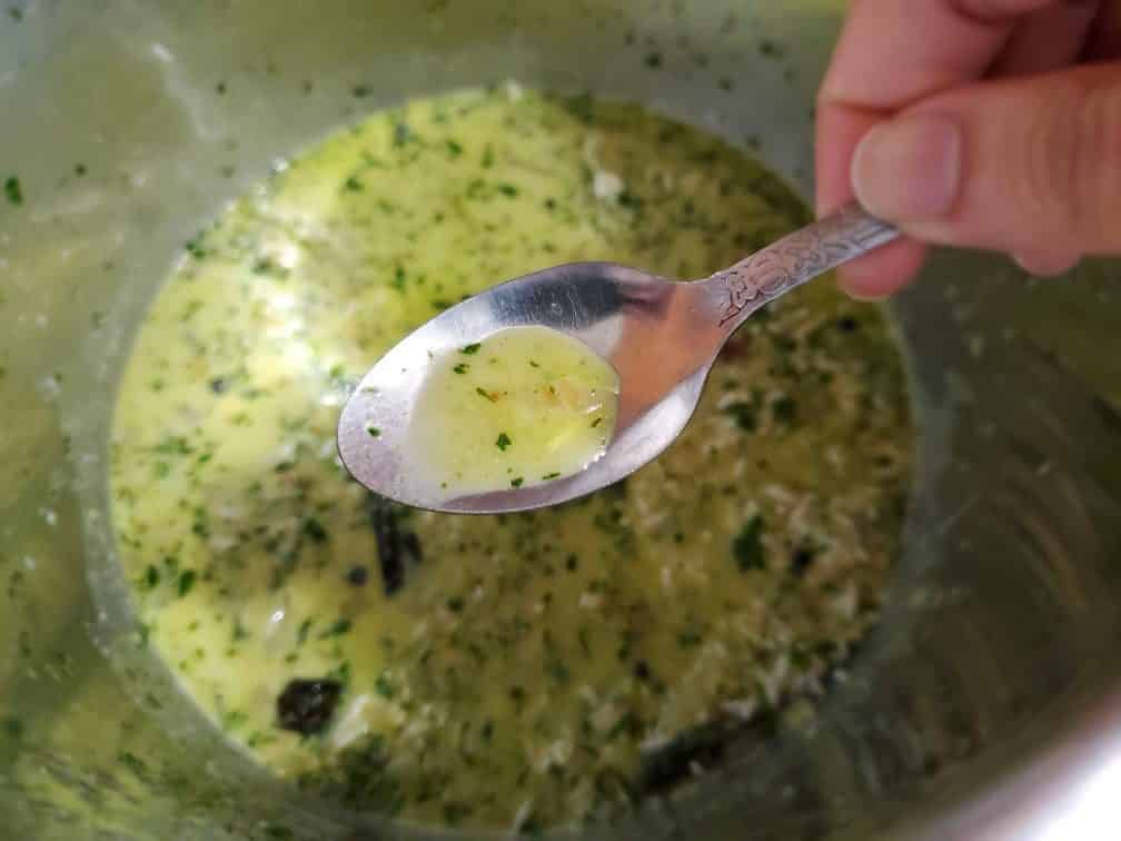 Make sure to taste the mixture. You should be able to taste the salt in the mixture. It would balance out once the rice is cooked. Undersalted rice can result in bland tasting rice. Cover the instant pot/rice cooker and cook rice the usual way you cook white rice.