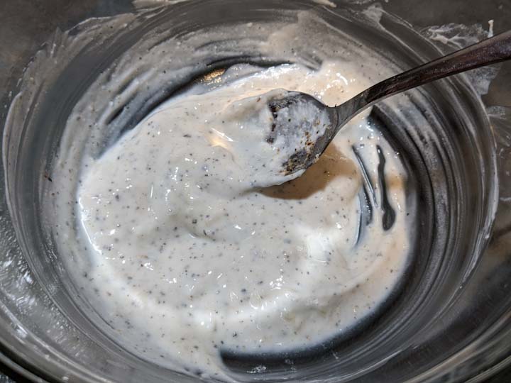 Add yogurt to a large bowl and whisk until the texture become smooth. Add black pepper, garlic, salt, and lime juice and mix. Taste and adjust the seasonings to your taste.