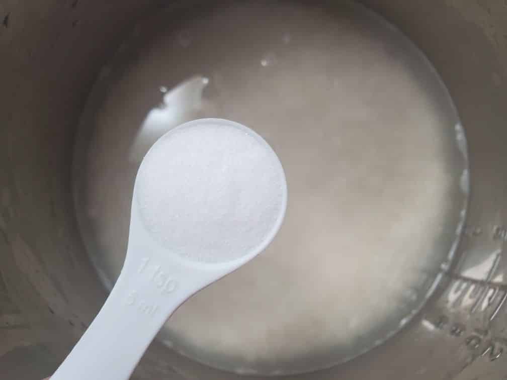 2. Add water and 1 tsp salt (keep rest of the salt for after). Cook your rice using your usual method. If you're using a rice cooker, turn on the cook switch. If you're using an instant pot, press the rice preset. All you do here is cook rice the normal way but with just a little bit of water than you’d normally use.