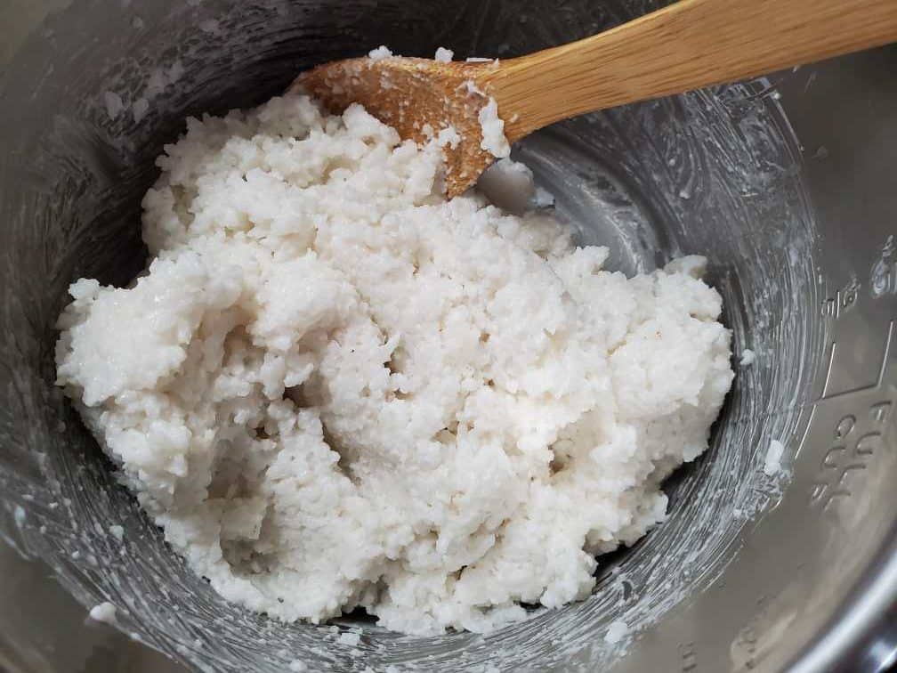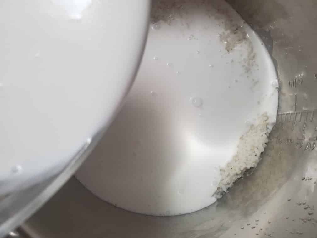 4. Add the coconut milk to the cooked rice as soon as the rice is done cooking. Do NOT wait until the rice cools down.
