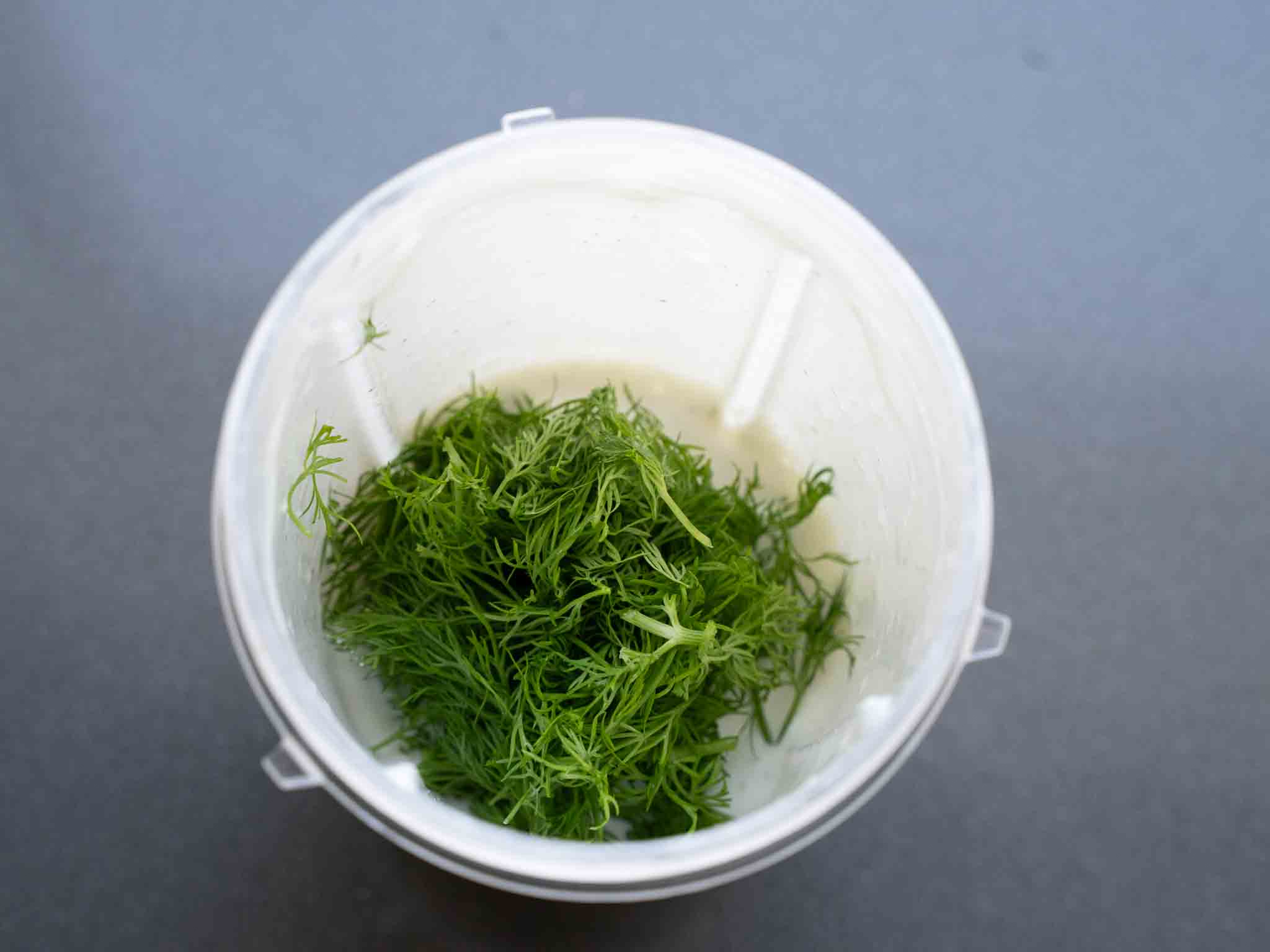 Add dill to the blender jar and pulse the blender for 3 - 4 times until dill is mixed into the sauce (do not blend too much after you add dill, it can make the sauce green, and dill pieces will disappear)