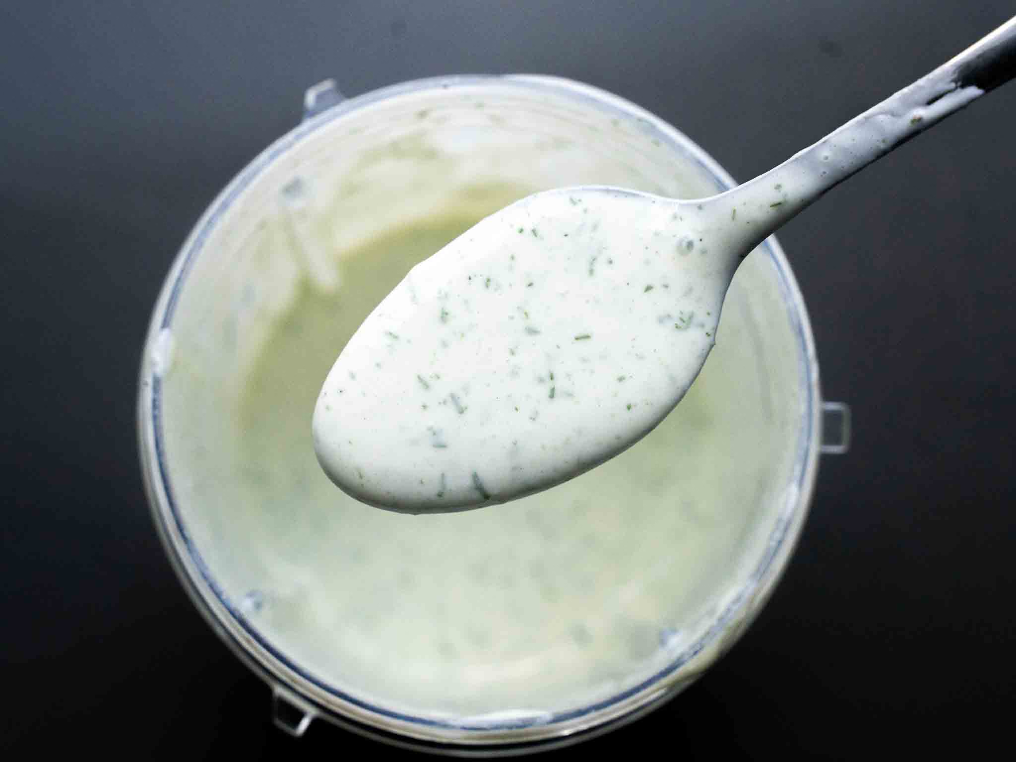 If you want to make it ahead, I advise making it a maximum of a day or two ahead. I don’t usually make it ahead, but I always make a lot so I can have leftovers for days. It stays fresh for 2 – 3 days in the refrigerator. It doesn’t honestly go bad after that, but the dill flavor dissipates, and the color of the sauce turns dull. Also you’d notice that the yogurt separates a little bit. You’ll see some foam on the top as well. So make sure to stir or shake the jar well to mix the sauce again, and it should be fine.