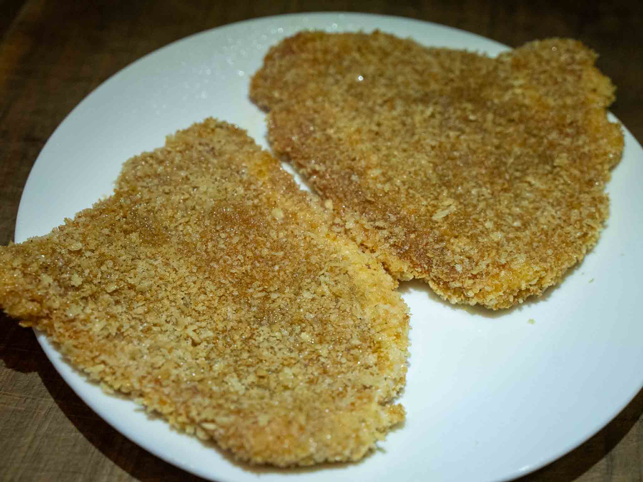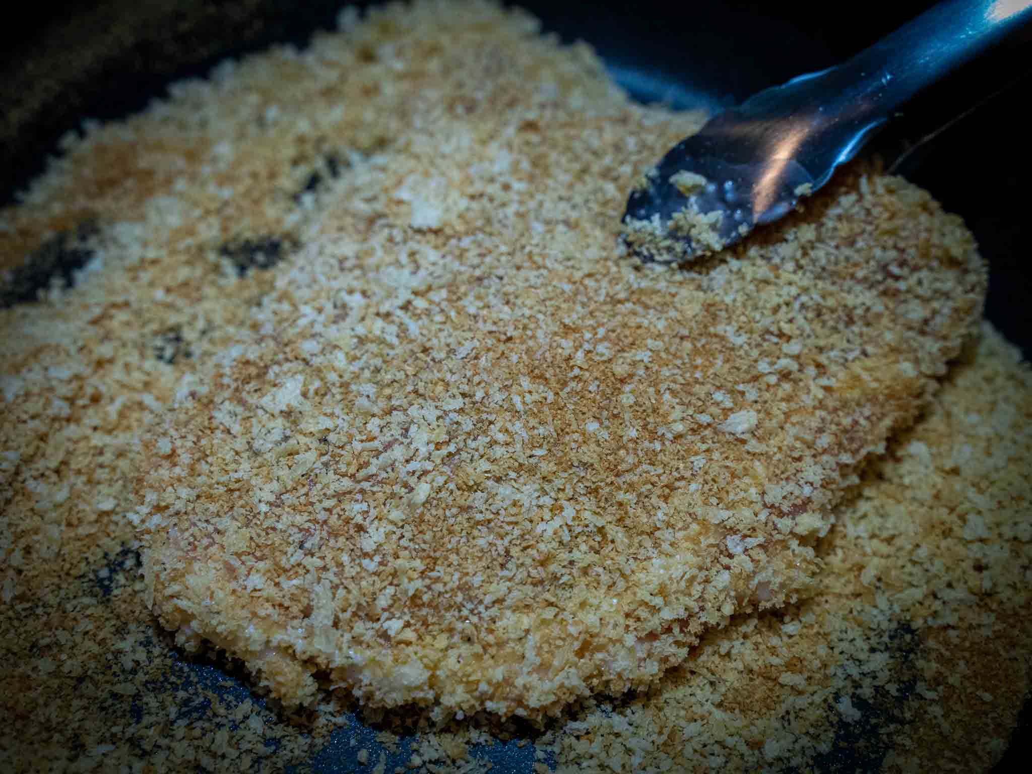 This step is optional but it helps to have an evenly browned pork katsu. Otherwise the katsu may end up pale colored and with brown and white patches. -