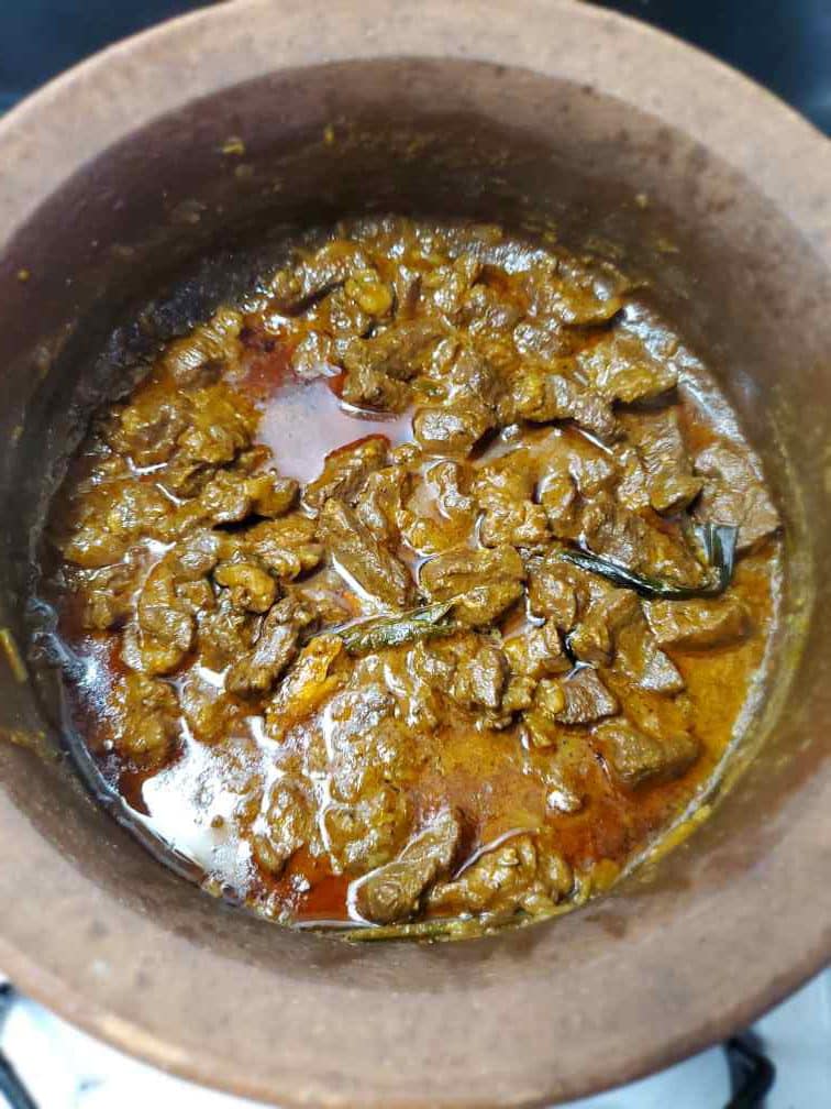 I made this beef curry to have with rice so I made it with less gravy. More like a dry curry. But if you wish to have the curry with something dry, with bread for example, then use more coconut milk to cook it with.