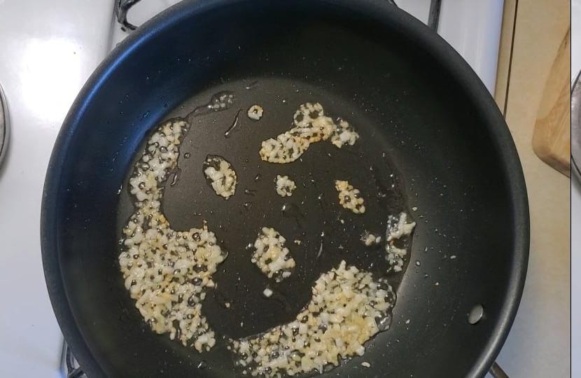 Now heat a wok or pan. Add some oil and let it heat. When the oil is hot, add your finely chopped ginger and garlic pieces.