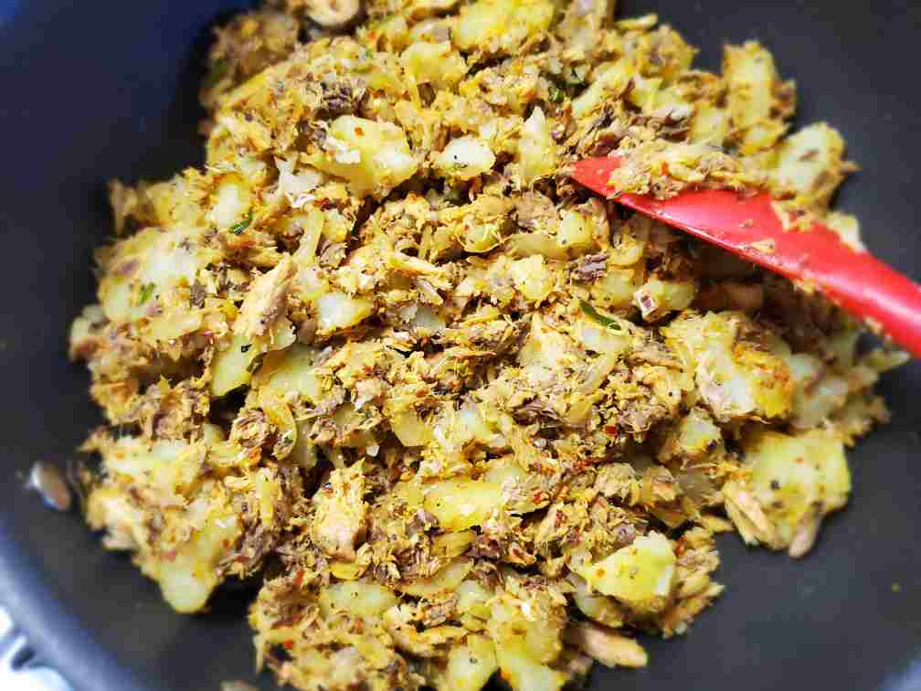 The filling is very easy and you only need a handful of ingredients. The main ingredients are canned mackerel, potatoes, and onions. If you want to make the mixture with fresh fish use Boiled, mashed tuna instead. You can also use canned tuna instead of canned mackerel too. Be careful not to make the mixture too watery as it would make the buns soggy. Also, be generous with black pepper and green chilies for more flavor and heat. Some people use Sri Lankan curry powder in their filling too. You can totally customize the filling to your liking.
