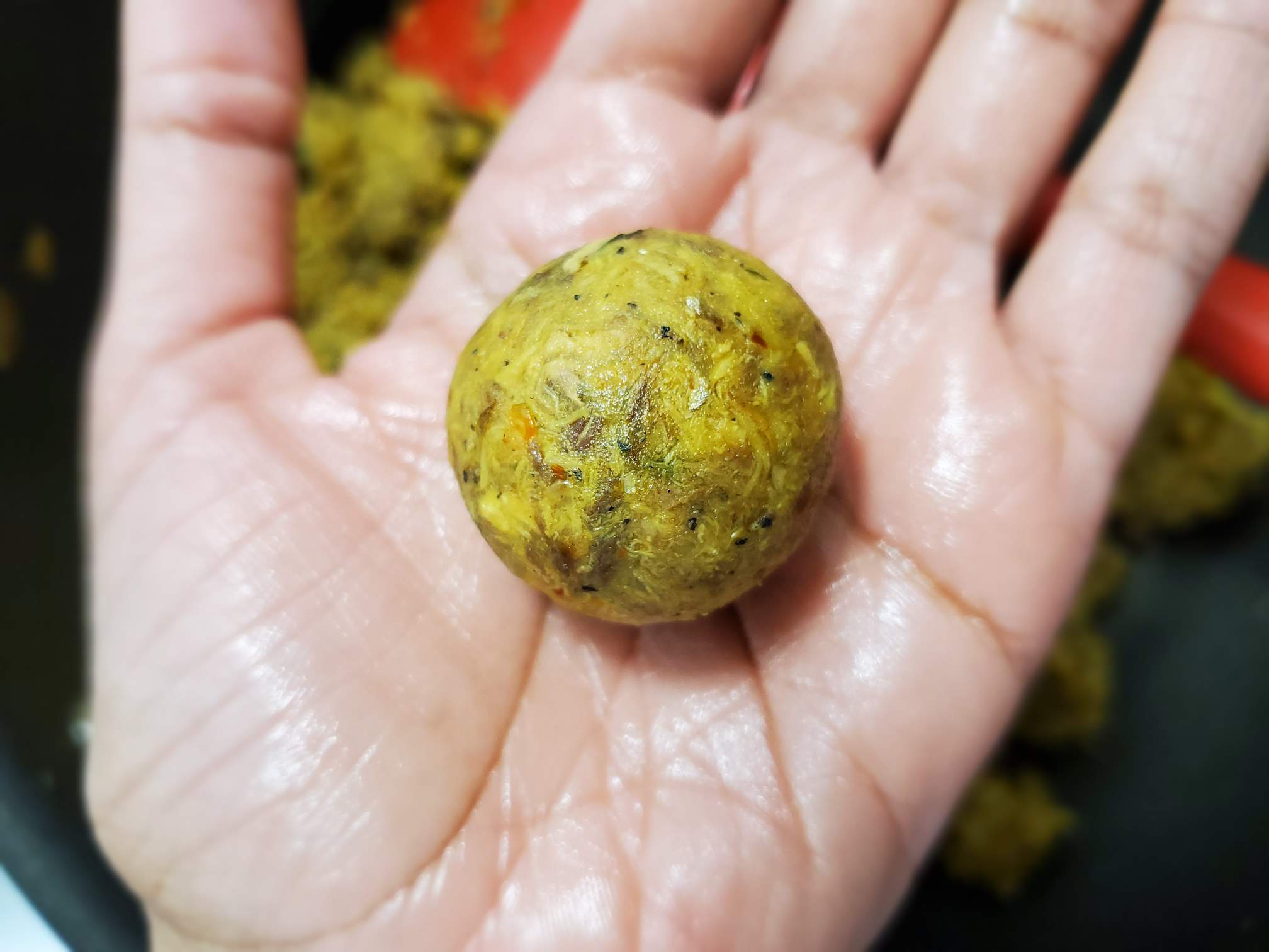 - Make sure you chop everything very fine. So nothing sticks out when you make the cutlet ball. If something sticks out of the cutlet ball, remove it or poke it into the ball.